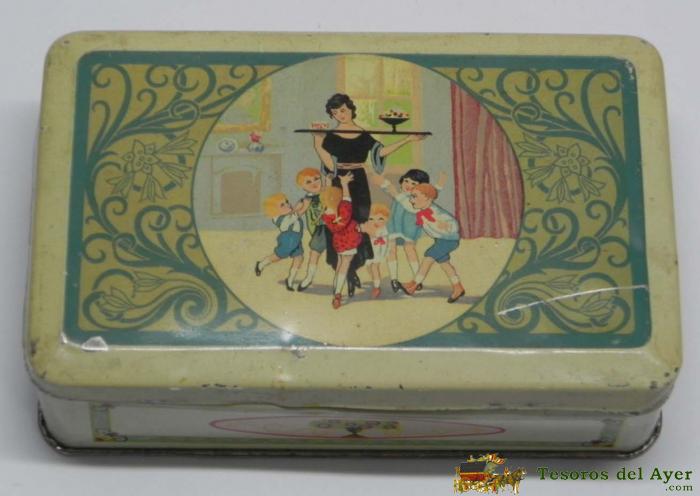 ANTIGUA CAJA DE GALLETAS OLIBET, RENTERIA, ILUSTRADOR MODERNISTA, IMPRESION ALFRED RIOMN NANTES, MIDE 20 X 10,5 X 7 CMS.